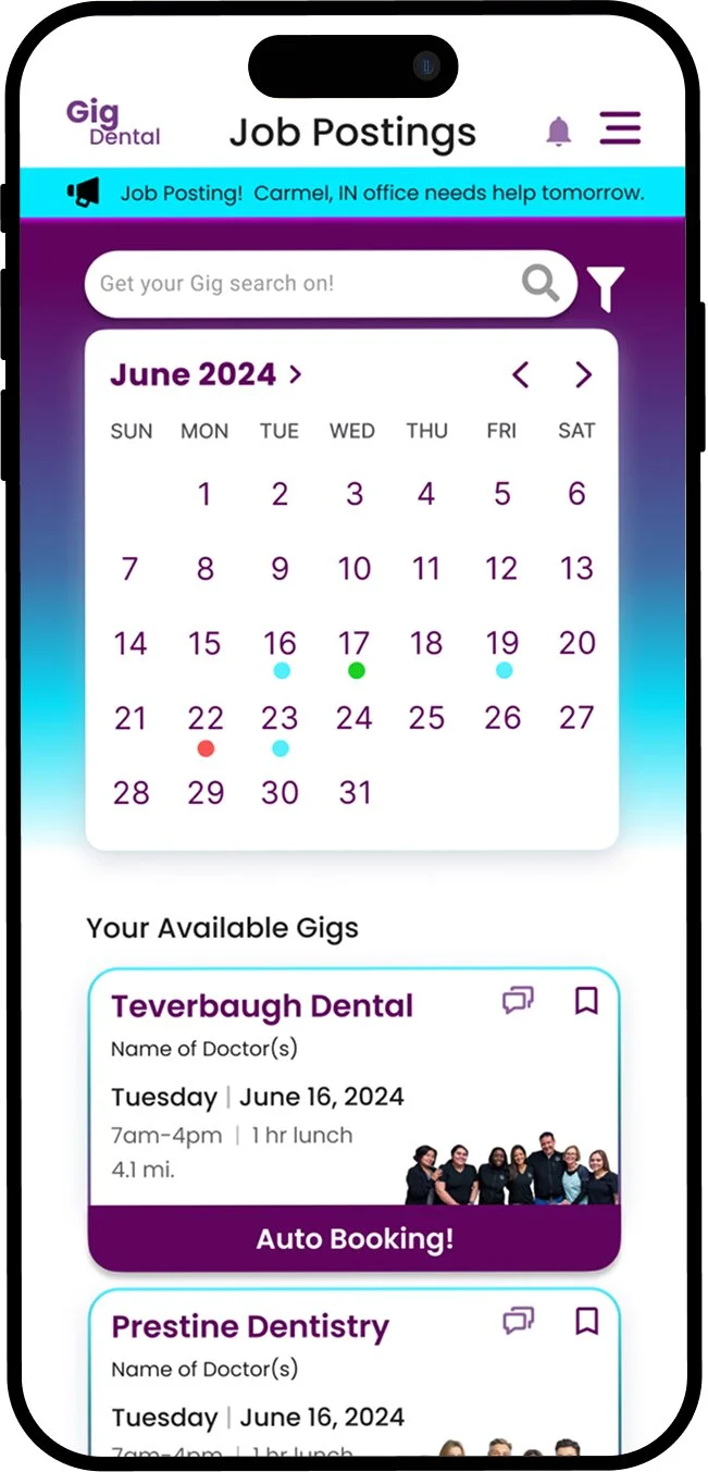 Unlike LinkedIn, which overlooks the day-to-day realities of working in dentistry, Gig Dental was created by a hygienist who’s been in your shoes. With experience in human-centered design, every feature was thoughtfully built to reflect the real challenges—and real potential—of life in the dental industry, today.
